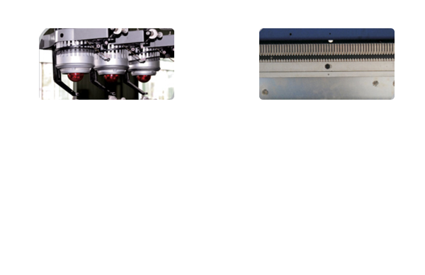 2x8 yarn feeders on both sides of 1 guide rail of 4,