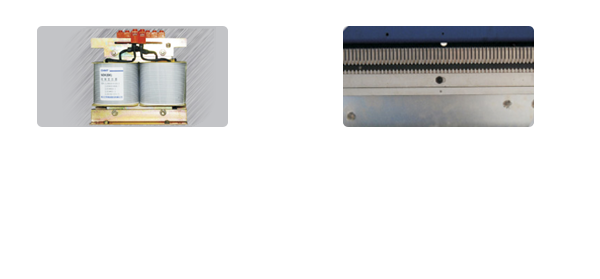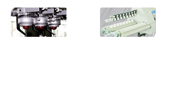 換色系統(tǒng) 2*8組紗嘴配置在4只導(dǎo)軌的左右兩側(cè),可在針床任何位置切換紗嘴;